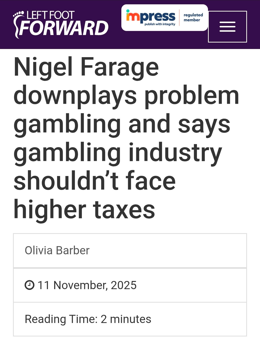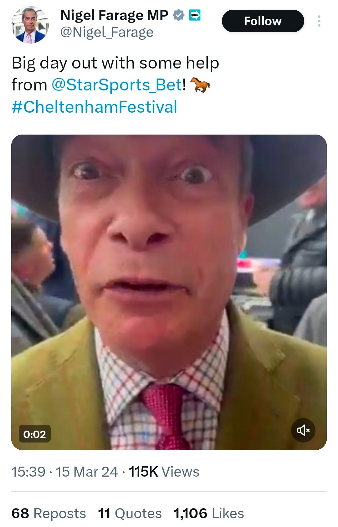 Well, to anyone thinking Nigel Farage was talking about high street betting shops in the post below, I have a bridge to sell you. He’s a proud sponsor of online casinos (although not officially backing any Curacao-based one yet).