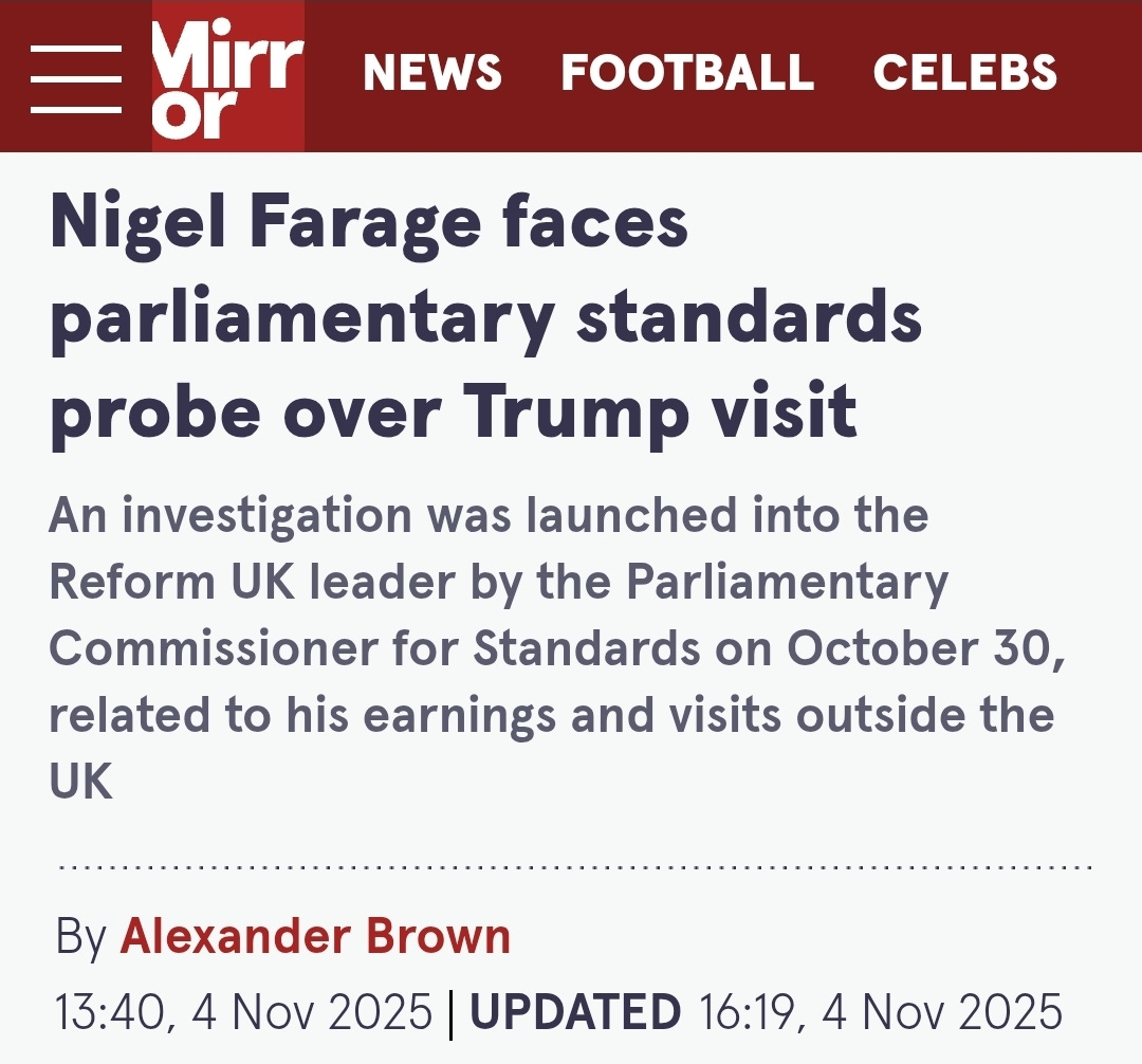 Separately, in March 2025, Farage travelled to Florida to attend a “Disruptors” dinner, which was not declared until The Times journalist Gabriel Pogrund exposed the omission in September 2025. Farage later amended the Register of Interests, declaring £25,000 in earnings channelled through Imperial Independent Media, a US PR and political consultancy.